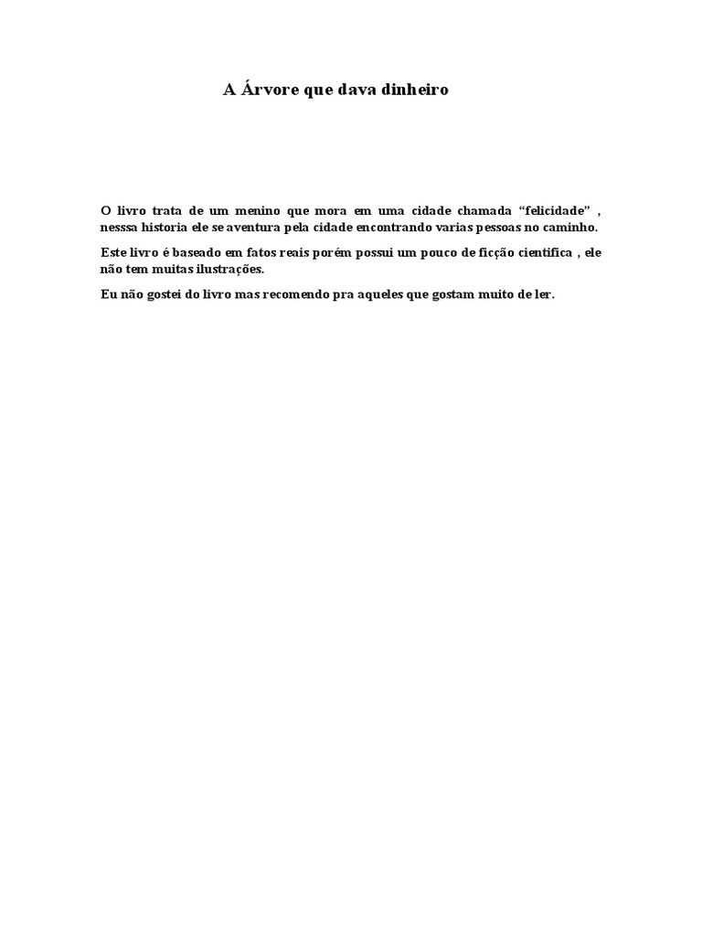 Livro Arvore Que Dava Dinheiro, A. A árvore que dava dinheiro, lançado pela Moderna em 1981, tornou-se um clássico da literatura jovem. Numa história de muito humor e ação, temos valores, informação econômica, educação financeira e lições de vida. Dinheiro traz felicidade? É possível felicidade sem dinheiro?