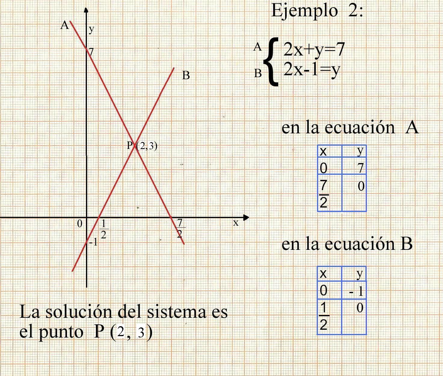 Sistemas de ecuaciones: método gráfico. Como es de esperar, el método gráfico consiste en representar las gráficas asociadas a las ecuaciones del sistema para deducir su solución. La solución del sistema es el punto de intersección entre las gráficas. La razón de ello es que las coordenadas de dicho punto cumplen ambas ecuaciones y.