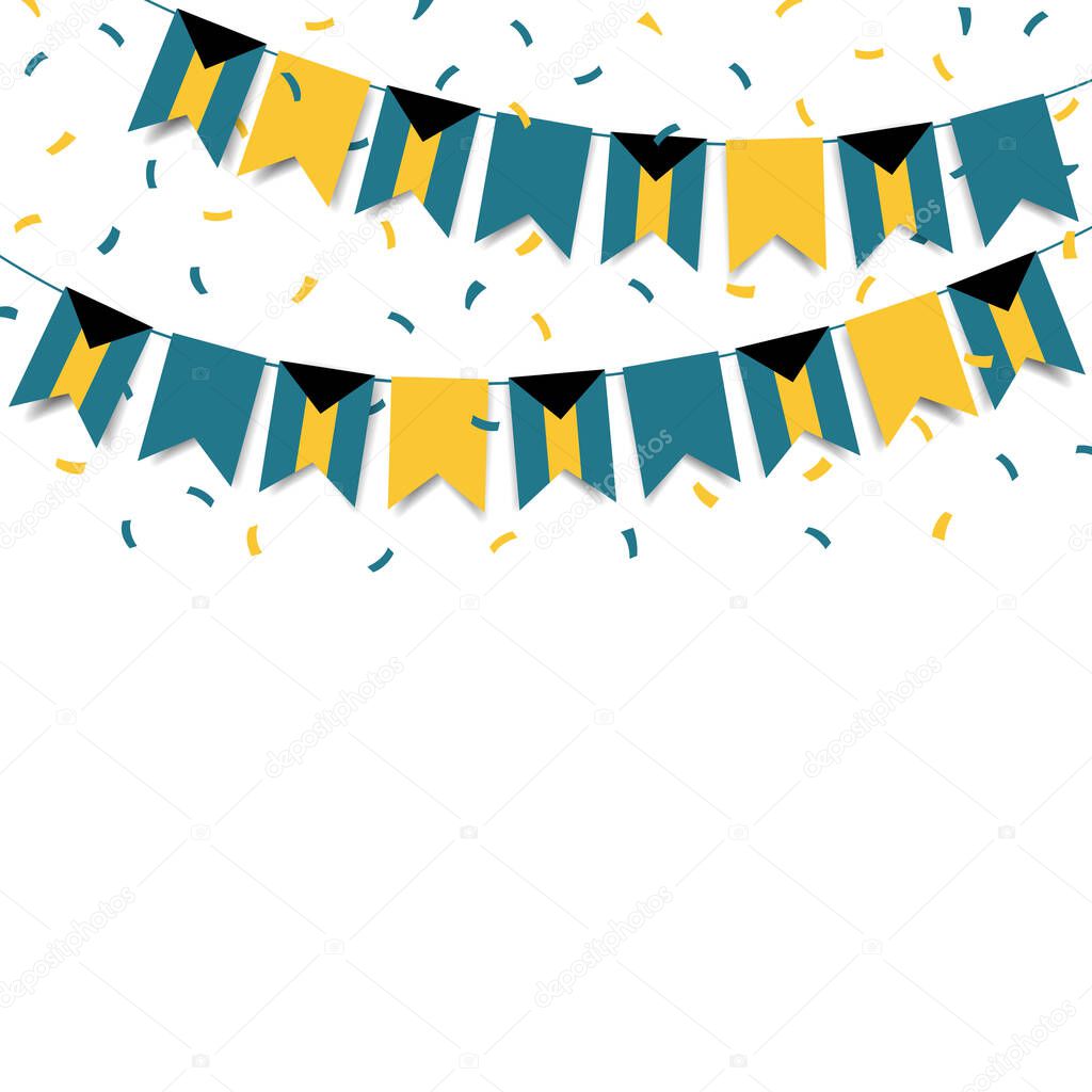Vector Illustration of Bahamas Independence Day (en inglés). Guirnalda con la bandera de Bahamas